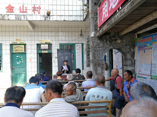 兴安县档案局局长赵兴梅为金山村委基层干部上党课