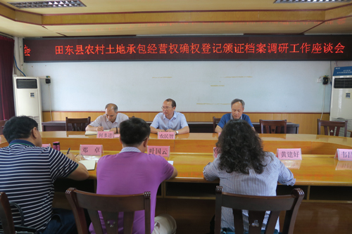农民智一行先后深入田东县思林镇政府、平马镇政府和县农业局实地调研,听取了田东县关于农村土地承包经营权确权登记颁证档案工作的情况汇报,并对县、镇、村、户农村土地承包经营权确权登记颁证档案材料进行详细查阅。