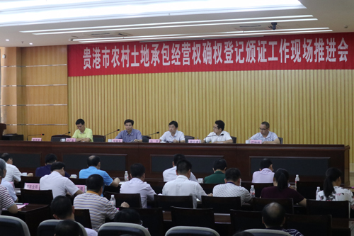 2018年7月12日,贵港市在覃塘区召开了农村土地承包经营权确权登记颁证工作现场推进会。市政府分管副市长徐育东、市农业局局长冯艺、市相关单位领导及各县市区相关单位领导参加本次会议。