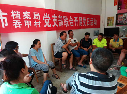 7月13日,靖西市档案局党支部与联系的吞盘乡吞甲村党支部联合开展党日活动,局党支部书记王骞志为党员上了一堂生动的党课。党课主题围绕当前精准扶贫“攻坚月”活动“十大攻坚”任务和2018年自治区脱贫攻坚督查暗访通报问题整改内容,紧密联系听课党员的思想、工作、生活和作风实际,结合近期市纪律通报的关于扶贫领域腐败和作风问题案例,运用正反典型,突出问题导向,引导党员干部注意防微杜渐,严防腐败滋生,杜绝“四风”反弹,努力改进工作作风。“七一”期间,该局党支部还组织开展了走访慰问困难老党员、三个“重温”、集体政治生日等活动,组织支部全体党员参加了习近平新时代中国特色社会主义思想系列知识竞赛,并深入各自帮扶户开展“一帮一联”工作和“三个一”活动。