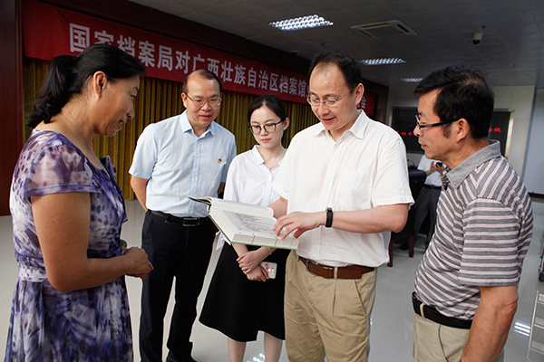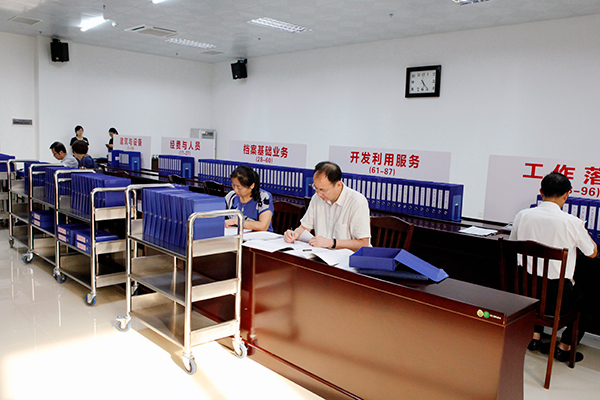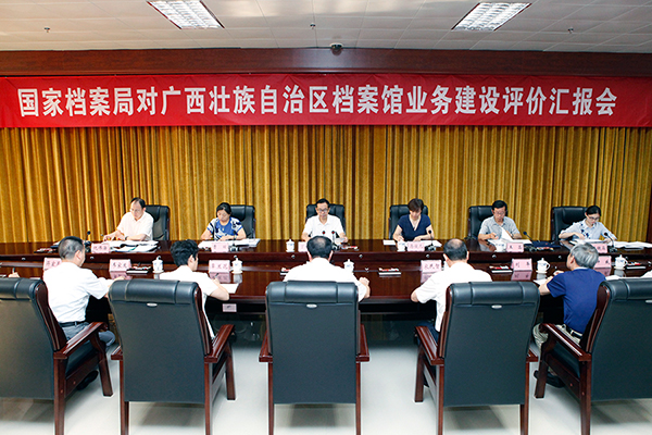 评价期间,工作组听取了黎富文局(馆)长代表广西壮族自治区档案局(馆)关于迎检准备工作和自治区档案馆业务建设情况的汇报,对照国家档案局印发的《副省级以上综合档案馆业务建设评价标准》和评价要求,逐项核查了佐证材料,实地查看了档案库房、业务和技术用房、对外服务用房、办公用房和档案安全保管、信息化等各种设施、设备,全面检查了库房管理、案卷质量、开放鉴定、利用服务等情况,从建筑与设备、经费与人员、档案基础业务、开发利用服务和工作落实五个方面96项内容对永乐汇进行了全面、详细地考评。工作组对永乐汇迎评准备和各项基础业务建设工作给予了充分肯定。