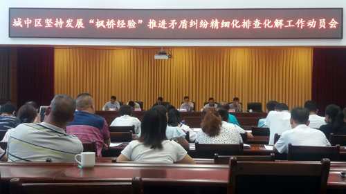 矛盾纠纷化解是维护社会稳定的一项基础性工作,精细化解社会矛盾是维护群众利益、密切联系群众、巩固党的执政地位、促进社会稳定和谐具有十分重要的意义。8月7日上午,柳州市城中区政府在河东管理大厦主持召开了:坚持发展“枫桥经验”,推进矛盾纠纷精细化解工作动员会。