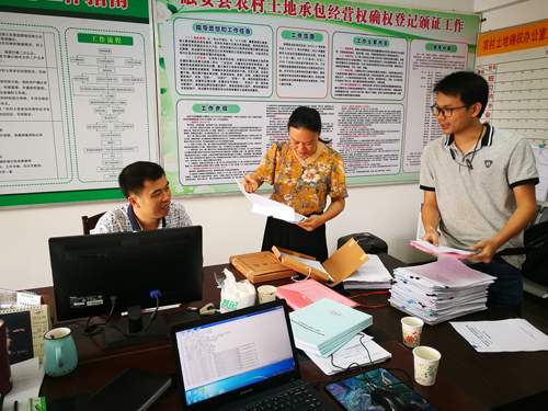 8月8日,融安县档案局业务骨干来到县农村土地确权办公室,对县确办、农村土地确权登记颁证外联公司、第三方整理公司等相关人员进行确权档案交接和整理指导。在指导中,县档案局就土地承包经营权确权档案资料的完整性及真实性审核、交接程序及手续、交接过程中档案的安全保证进行了详细讲解,并认真制作好档案交接表样本提供参考,以保证全县农村土地承包确权档案应收不漏,顺利完成交接,及时进行规范化归档及数字化,做好农村土地承包经营权确权登记颁证资料保障。