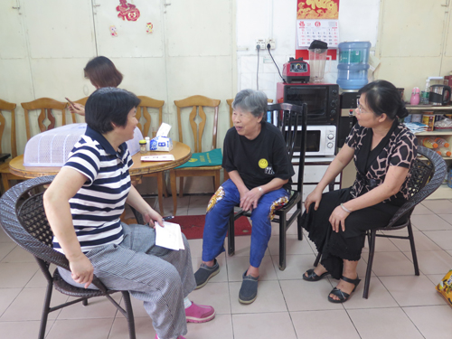 6月21日市档案局长孙桂珍(右一)带队到社区居民家中宣传家庭档案建档和档案法律知识