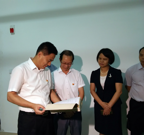 8月20日下午,贵港市委书记李新元到市档案局调研,市委常委、秘书长李建锋,副市长农卓松陪同调研。