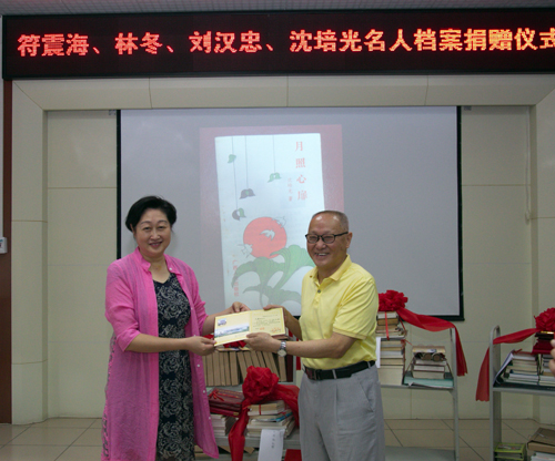 2018年8月16日9时,柳州市档案馆在会议室举办一次简短而隆重的名人档案捐赠仪式,接收国家一级剧作家符震海,著名诗人林冬,著名文史专家刘汉忠、沈培光的个人档案。柳州市文学艺术联合会副主席蓝建军、柳州作协主席徐小雅、柳州艺术剧院院长刘康,柳州市艺术研究所宁文活书记以及柳州著名作家韦俊海、黄粲兮等嘉宾和媒体记者近30人出席捐赠仪式。