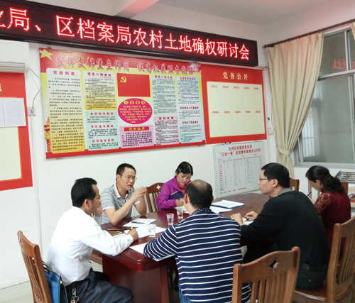 一,加强领导,建立机制。4月26日在玉州区档案局会议室召开了协调研讨会,农业局档案局的主要领导,听取了玉州区土地确权相关工作情况介绍和档案收集整理的工作进度,研究确定了两部门联合联络机制和协调解决机制,为下一步全面开展土地确权档案整理工作打下基础。