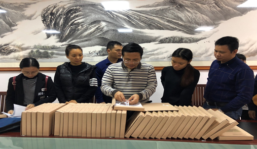 图为南宁市档案局廖茂隆局长(右三)对精准扶贫档案工作进行指导。