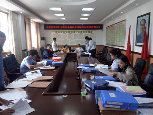 图为钦州市档案局在浦北县参加农村土地确权登记颁证成果市级检查验收工作