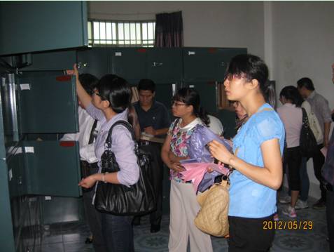 现场推进会中各乡镇、涉农单位档案工作分管领导、档案管理员到示范档案室参观学习