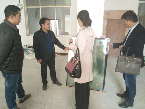 资源县档案局领导班子成员察看库房玻璃质量情况