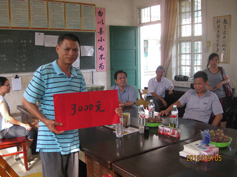 在慰问过程中,县领导林中贤、县档案局局长何涛、县投资促进局局长钟楚富等领导详细询问了解了教师们的工作和生活情况,对枧头村小学在教学中取得的良好成绩给予了充分的肯定,并鼓励教师们再接再厉,以更加饱满的热情投身于教育事业,推动我县教育事业再上新台阶。随后,县领导林中贤代表慰问组为枧头村小学发了3000元慰问金。