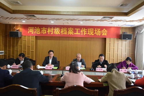 图为河池市村级档案工作现场会现场