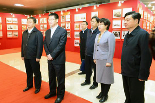 国家档案局副局长付华(左一)、自治区政府副主席杨晋柏(左二)和工业和信息化部产业政策司司长许科敏在自治区党委副秘书长、办公厅副主任、自治区档案局局长宁玉琼(右二)、自治区档案馆馆长黎富文(左三)等陪同下参观工业档案文献展