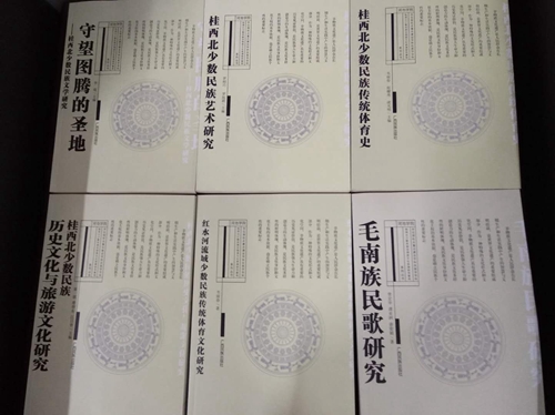 此次征集到的图书,包括《中国共产党对广西壮族干部的培养(1921-1949)》《中国共产党东兰县历史资料汇编(1921-1949》《守望图腾的圣地--桂西北少数民族文学研究》《桂西北少数民族艺术研究》《桂西北少数民族传统体育史》《桂西北少数民族历史文化与旅游文化研究》《红水河流域少数民族传统体育文化研究》《毛南族民歌研究》《民族民间体育游戏理论与方法》等,系河池学院相关机构近年来在地方党史、民族史方面的研究成果。