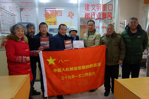 中国人民解放军第四野战军第39军152师后代向桂林市档案馆赠送《军旗飘过万水千山》