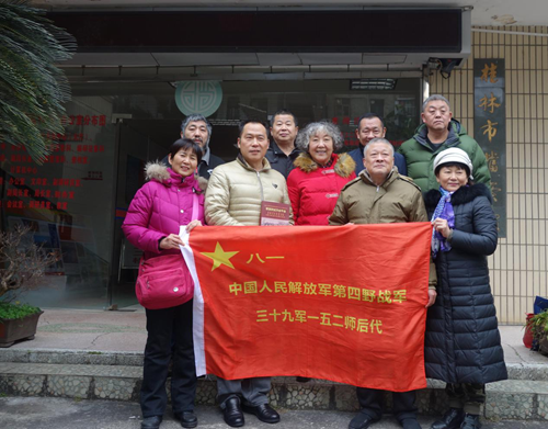 152师后代在桂林市档案馆门前合影(前排中为《军旗飘过万水千山》作者白玉芳)