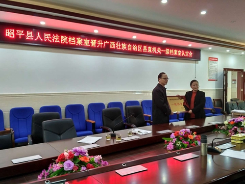 近日,贺州市档案局组成档案室晋升认定组来对昭平县人民法院档案室进行现场考核打分,最终该院档案室得分91.5分,按《广西壮族自治区县直机关档案室等级认定标准》成功晋升为广西壮族自治区县直机关一级档案室。