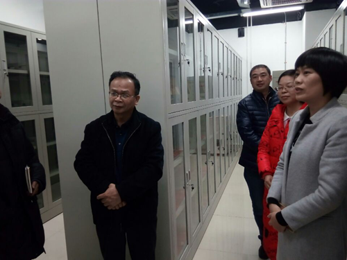 图为钦州市档案局认定组在检查市开发投资集团有限公司档案室