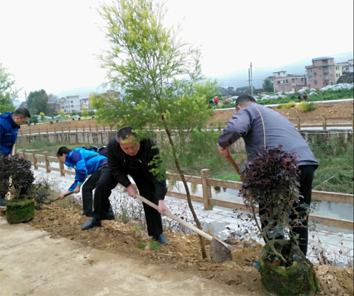 在植树活动现场,全体党员干部职工分工协作,有的挥锹,有的扶树,配合默契,到处都是忙碌的身影。大家精心为一颗颗树苗挖坑、培土、浇水,为大地增添一抹绿色,经过忙碌的劳动,很快就高标准完成了任务。