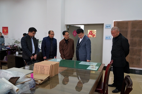 梧州市委常委、常务副市长吴浩岭(右二)在察看档案裱糊工作