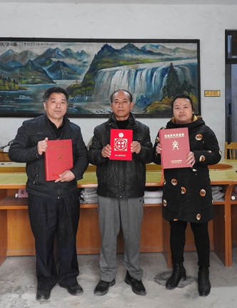 华盛国同志(中)捐赠《华氏族谱》时合影