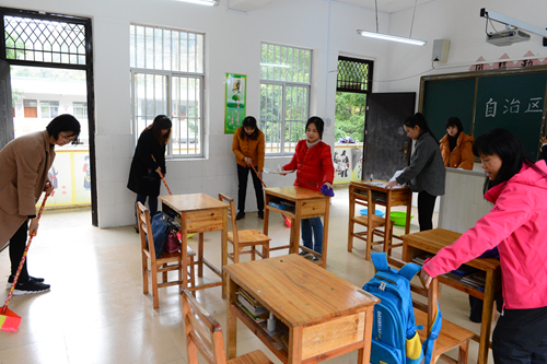 为民新村小学打扫教室