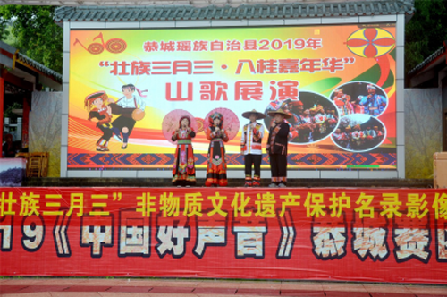 恭城瑶族自治县举办民族团结进步宣传活动、“壮族三月三•歌会”山歌展演、“壮族三月三•非物质文化遗产”图文展