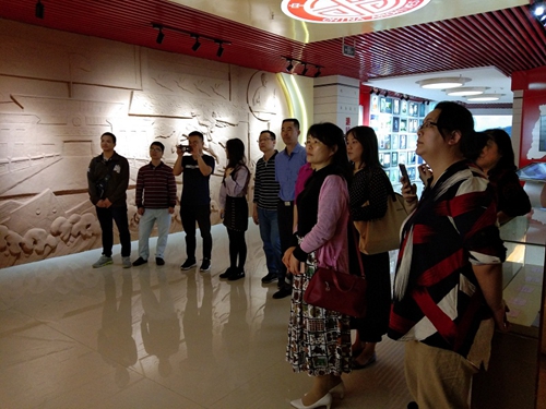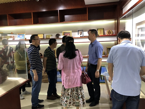 图为参观团参观五楼档案礼品展厅