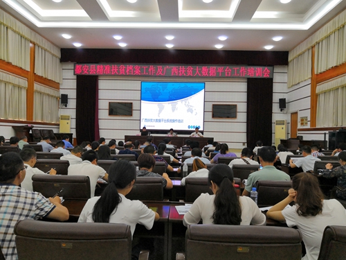 近日,都安瑶族自治县脱贫攻坚指挥部办公室举办了为期一天的精准扶贫档案工作和广西扶贫大数据平台操作与运用培训班。全县19个乡镇分管扶贫工作的领导、乡级扶贫信息员(档案员)、县直涉及贫困县、贫困村摘帽指标单位的分管领导及业务员、15个专责小组主要负责人共117人参加了培训。自治县副县长张文达同志、自治县人大常委会副主任韩卫同志出席培训班并分别作重要讲话。