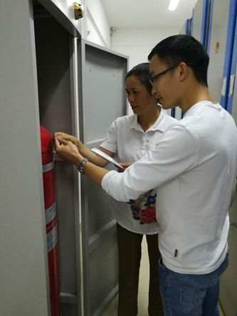 港北区档案馆工作人员检查七氟丙烷灭火系统