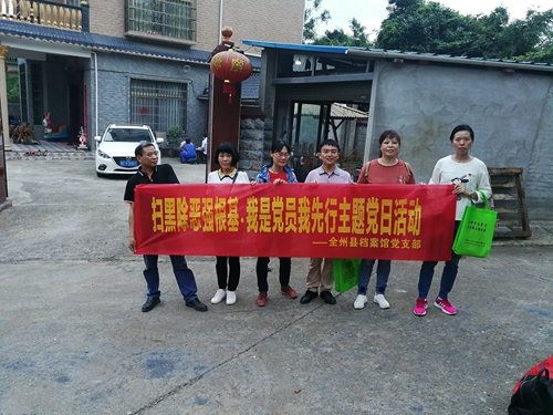 为助力全州县深入开展扫黑除恶专项斗争和群众安全感满意度“双提升”工作,全州县档案馆党支部于5月15日利用下午半天及晚上休息时间开展了“扫黑除恶强根基.我是党员我先行”主题党日活动和夜访大走访活动。为扎实开展夜访大走访活动,确保走访一户不缺,问题一个不漏,成立了以馆长任组长,副馆长为副组长,各工作组组长为成员的领导小组,统筹负责全体干部入户调查活动的组织、领导与实施。
