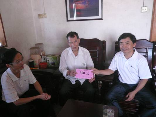 2012年6月29日,针对老党员行动不便的实际,大新县档案局党支部开展上门走访退休老党员活动,与老党员拉家常,建议他们多保养身体,征求他们对新时期如何做好档案工作的建议,给他们送去慰问金,把党的关怀和温暖送到老党员的心坎上。老党员表示将一如既往尽力履行党员义务,积极宣传党的方针政策,语言上和行动上支持县委县政府开展的各项工作,带好教育好孙子女,履行好爷爷职责。图为该县档案局党支部书记、局长赵锋敏(右一)宣委、副局长吕前(左一)与老党员韦永简拉家常(中)。