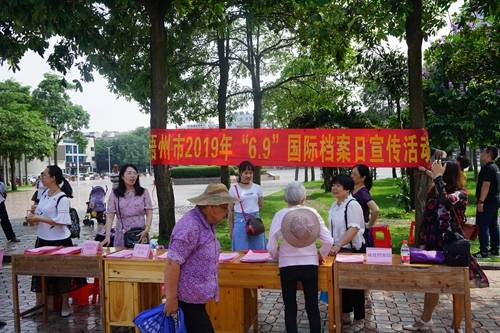 近日,梧州市档案局、馆联合万秀、长洲、龙圩三个城区档案局、馆及市城建档案馆到龙圩区世纪广场开展2019年国际档案日宣传活动。