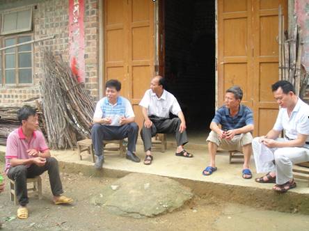 再走进屯里,看到有3户人家正在建新楼房,还有很多户已经住进了楼房,算起来也有一半人家了,调研组感到非常欣慰。据了解,这些脱贫致富户中,有的养羊、有的养母猪、有的种甘蔗、有的外出打工、有的买车帮人拉沙、拉砖等等。随后,对照帮扶对象名单,调研组逐户到群众家中,了解群众的生产生活情况,当了解到扶贫对象中还有3户五保户,1户低保户,3户生活比较困难时,调研组心情非常沉重,并到现年80多岁的五保户杨妙单老人家与她交谈起来,对她问寒问暖,她说她有两个儿子因病去世了,现只有一个小儿子去德保打工,政府把她列为五保户,一个月给的米和补助费也够她生活了,她还说非常感谢党和政府的关怀,调研组叮嘱她一定要注意身体。在黄祥作的家中,了解到他通过种甘蔗及到县城打工建起了现在的两层楼房,调研组问他需要政府为他们群众做点什么,他说只希望政府能够尽快地帮助他们修好屯级公路,引进能够规模经营的种养项目,帮助屯里困难群体脱贫致富。有的群众希望调研组能够帮助他们建一个垃圾场,集中堆放垃圾,利于村民身心健康。谭永高局长表示,田东县档案局一定尽其所能,为龙船屯群众做些力所能及的事。