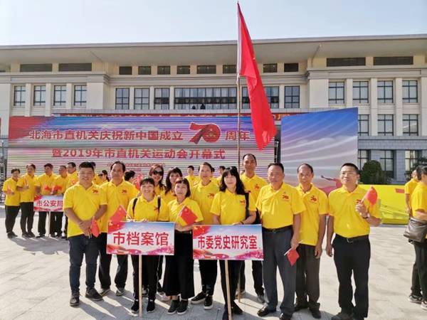 9月23日,北海市直机关庆祝新中国成立70周年暨2019年市直机关运动会在市委党校开幕。市档案馆精心选派8名运动员代表参加开幕式及健步走比赛。