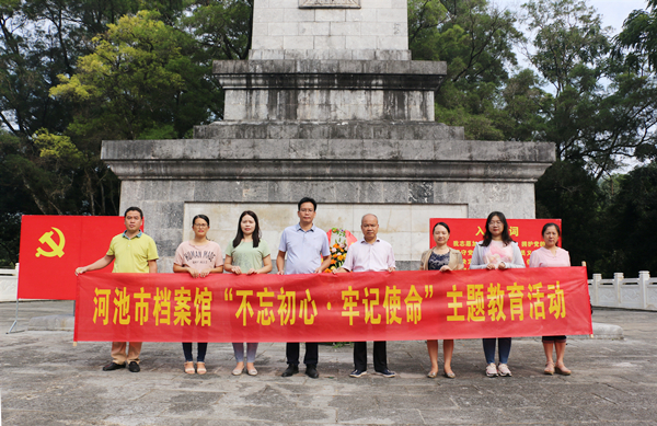近日,为深入推进开展“不忘初心、牢记使命”主题教育,教育引导党员干部传承和弘扬老区精神,河池市档案馆一行9名党员干部在馆长吴锡刚的带领下到东兰革命老区开展革命传统教育。