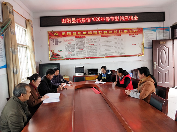 在新春佳节即将来临之际,田阳县档案馆领导带队到那坡镇那驮村开展入户走访和春节慰问活动,为贫困户、村干部和扶贫工作队员送上新春的祝福。