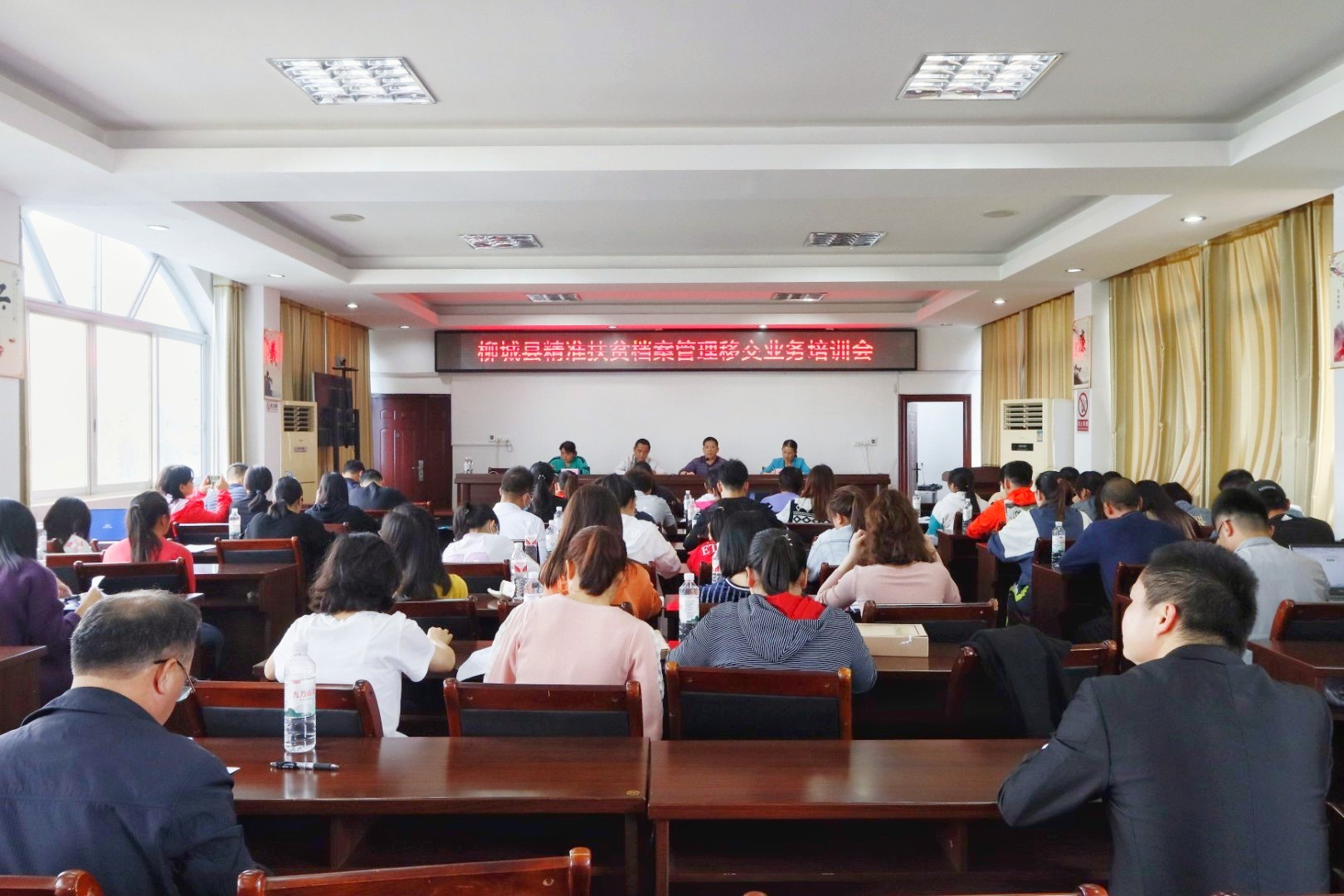 近日,柳城县扶贫办、档案局联合举办精准扶贫档案管理移交业务培训会。扶贫办主任黄惠金主持培训,县委办副主任魏雄涛出席会议并讲话。该日共举办了两期培训,每期半天。各乡镇、华侨管理区、易地扶贫搬迁办等单位分管领导及档案员,全县23个脱贫村档案员共143人参加培训。