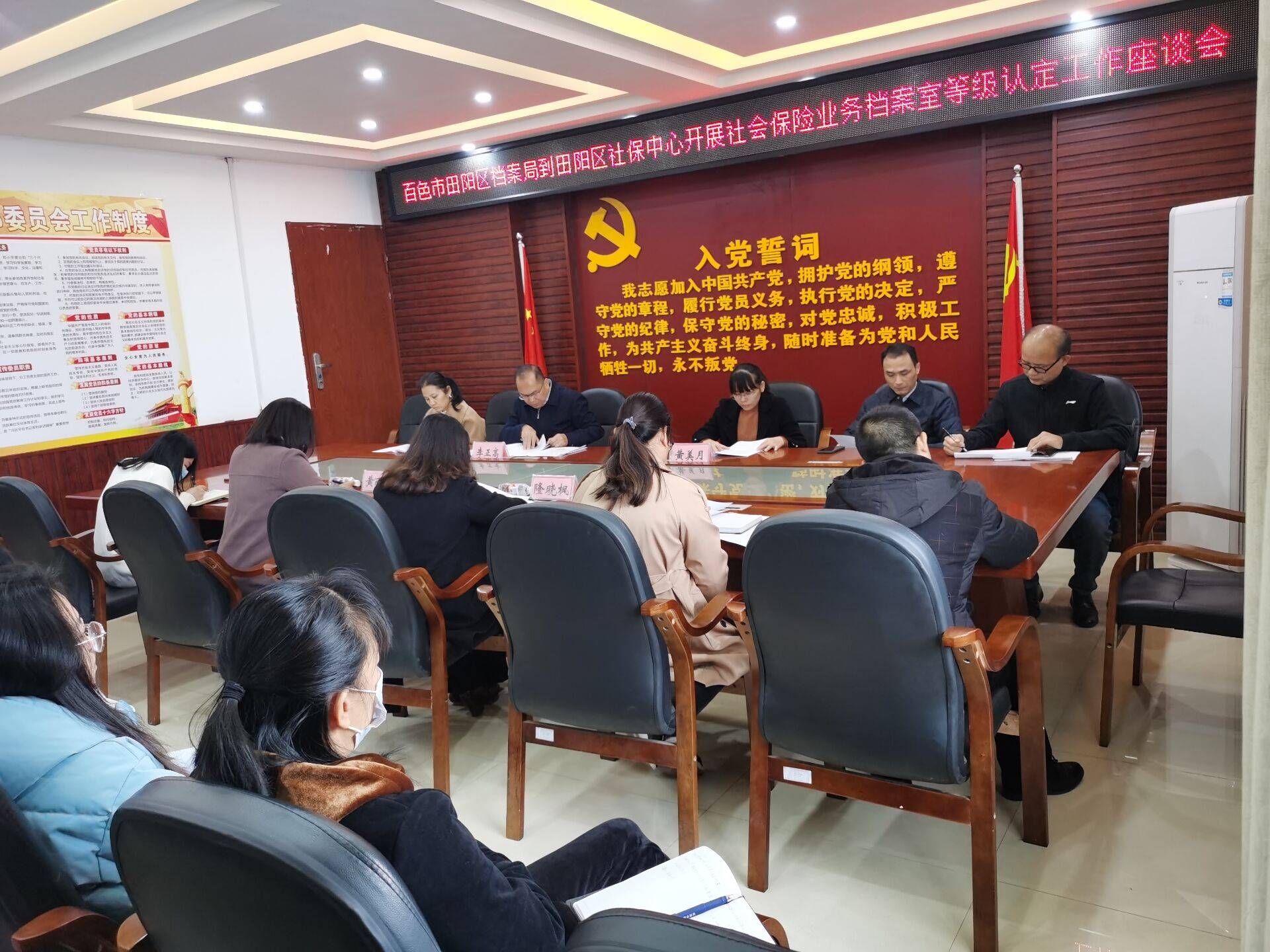 2021年12月2日,百色市田阳区档案局到田阳区社保中心开展档案室等级认定工作。