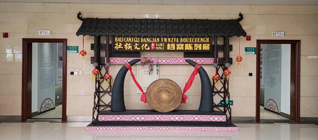 图为在馆区举办的壮族文化(南宁)档案陈列展