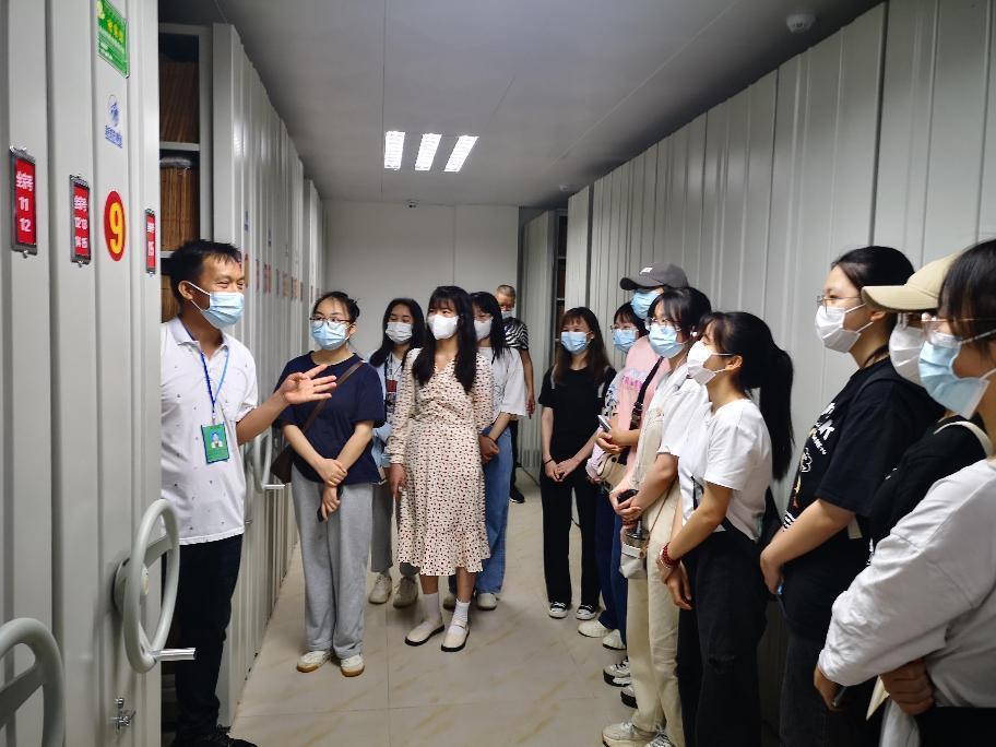 在档案库房,同学们实地了解了档案库房及档案分类放置的基本要求,对档案库房有了感官上的深刻认识。