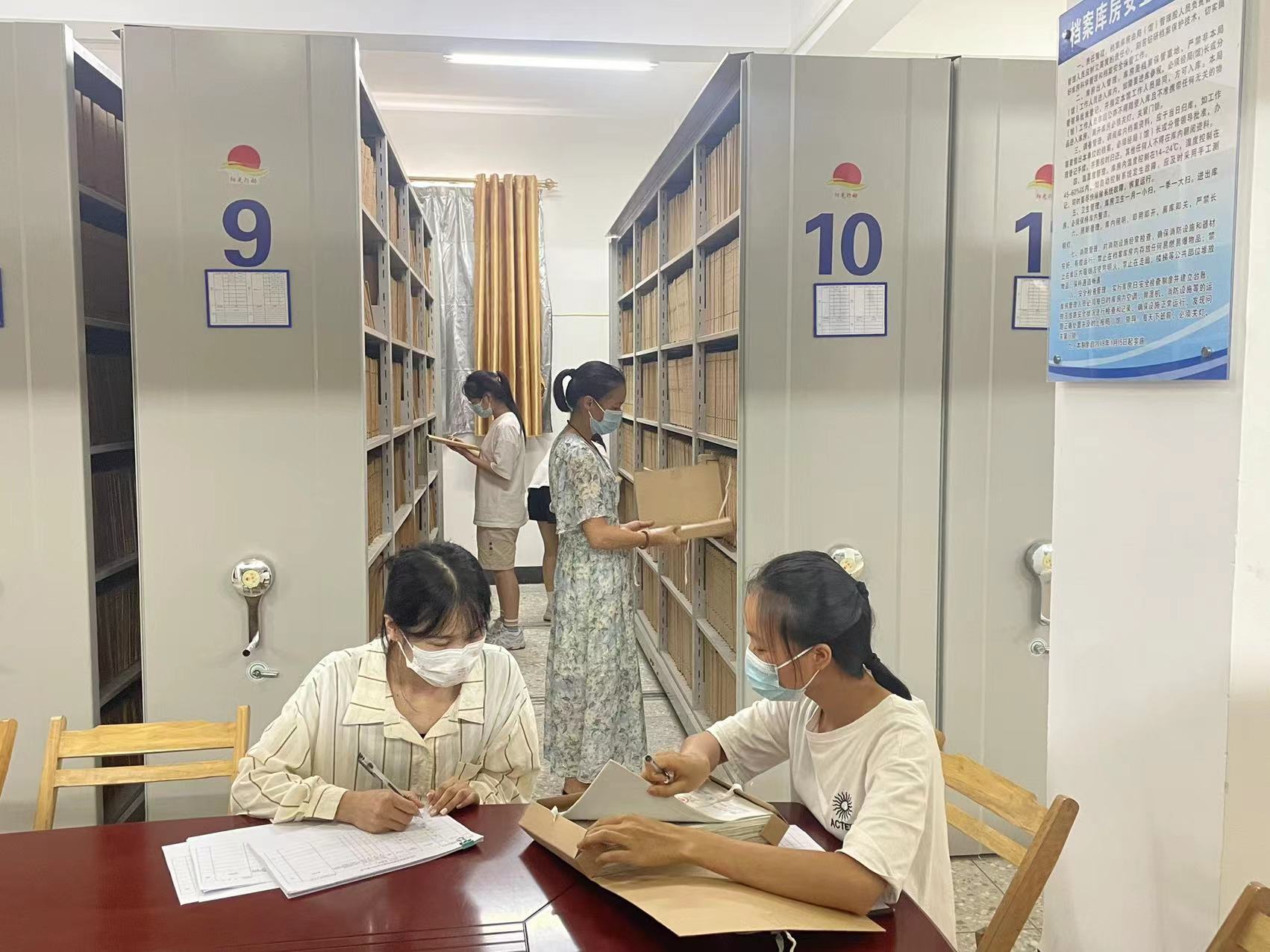 此次档案清点工作由档案馆领导统筹,业务骨干带队,充分调动暑假返家乡社会实践高校学生等相关力量,围绕档案数量是否账物相符、档案装具是否完好无损,档案纸张是否有霉变、虫蛀、破损以及档案全宗号、目录号、案卷号等卷面信息和卷内文件目录、备考表是否齐全规范等内容,对馆藏实体档案逐盒逐卷进行仔细核对检查,并做好档案检查情况登记和统计。同时对清点结果进行认真梳理,对清查过程中发现的问题汇总分类,制定针对性解决方案,以确保馆藏档案的准确性、完整性、安全性。