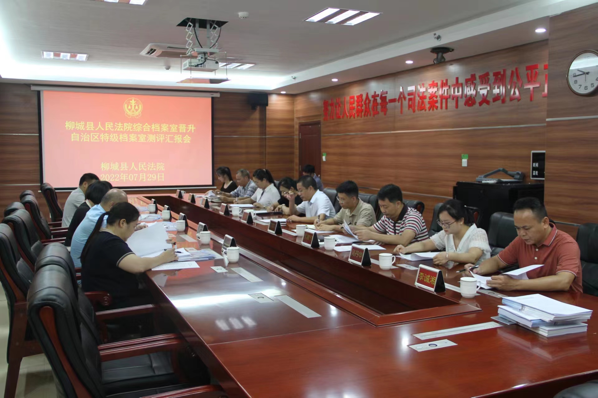 2022年7月29日,广西壮族自治区档案局组织测评专家组对柳城县人民法院综合档案室晋升自治区特级档案室进行认定考评。经综合评议,柳城县人民法院综合档案室以97.6的测评总分晋升为自治区特级档案室。