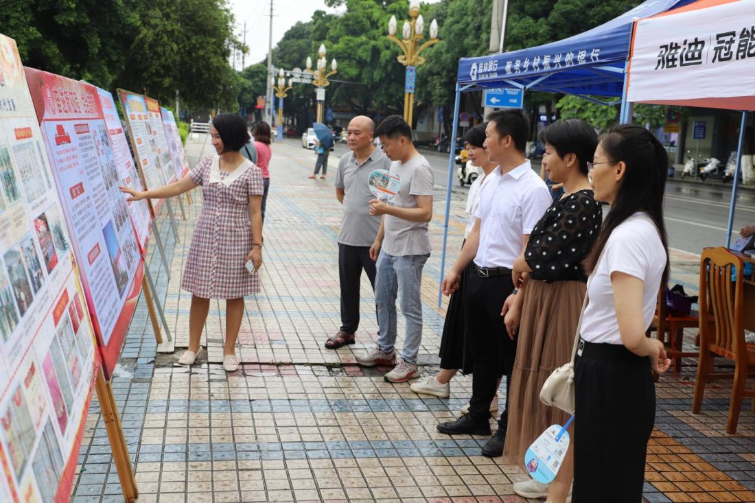 武鸣区档案局(馆)联合图书馆、社保中心通过悬挂宣传横幅、摆放宣传展板、发放宣传资料、宣传环保袋、解答咨询等多种形式开展宣传活动。城区发改局、卫健局、综合执法局、陆斡镇、罗波镇也参与展板宣传。宣传展板紧扣主题,从文字档案认知武鸣历史脉络,从图片档案领略壮乡新时代风采,用档案承载历史,用档案见证辉煌,展现踔厉奋进的昂扬精神面貌。