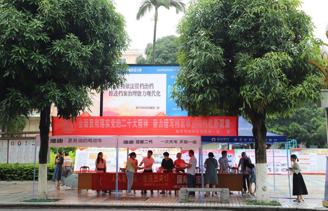 6月9日,是第16个“国际档案日”。为让更多人关注档案、走近档案,营造全社会关心支持档案工作的良好氛围,南宁市武鸣区档案局(馆)在城区文化广场开展以“奋进新征程 兰台谱新篇”为主题的国际档案日集中宣传活动。