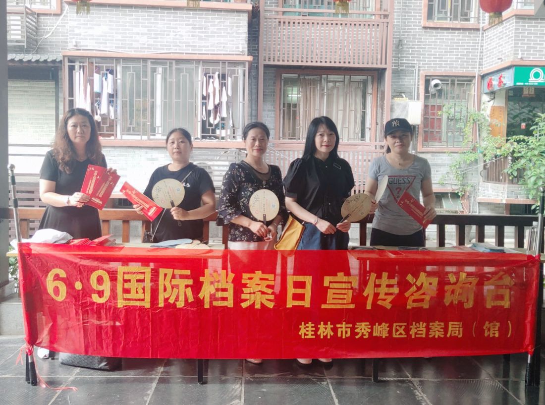 为庆祝国际档案日,扩大档案法和档案知识宣传覆盖面,当天下午,秀峰区档案馆在东西巷开展国际档案日宣传活动,接受群众对档案业务的咨询,向市民游客发放档案文创宣传品和档案法宣传折页。此外,秀峰区档案馆还联合秀峰街道办、丽君街道办、甲山街道办及下辖社区、企业单位等利用电子屏播放档案宣传标语,营造浓厚的档案宣传氛围。