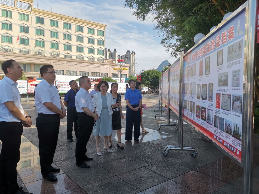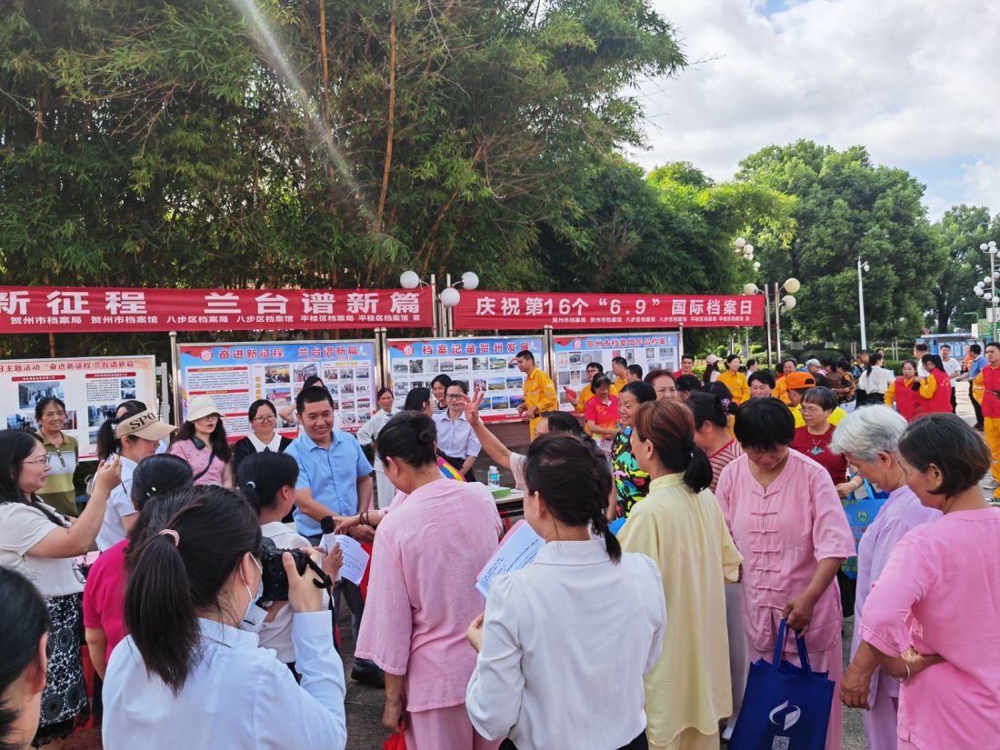 为庆祝第16个国际档案日,2023年6月9日,贺州市档案局、档案馆联合八步区、平桂区以及市直单位在贺州广场举行以“奋进新征程 兰台谱新篇”为主题的“6·9”国际档案日宣传系列活动,市委领导二级巡视员蒋永亮,市委副秘书长、办公室副主任、市档案局局长李建存,市档案馆馆长柳雪英参加活动。