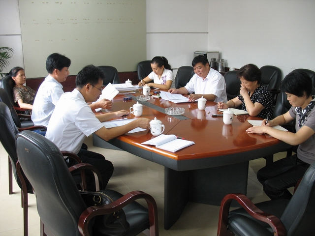 图为梧州市档案局档案执法检查组到市住建委检查时听取该委党委书记姜卫权(右三)汇报工作
