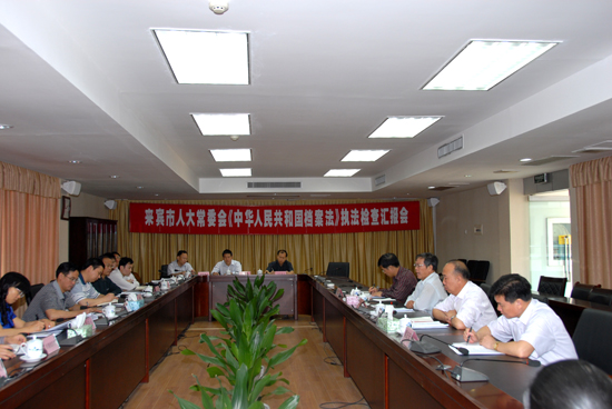来宾市人大常委会召开的《档案法》执法检查汇报会现场